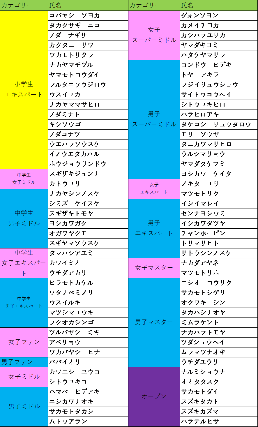 Monkey Cupエントリーリスト 8/13時点 【締切まで1週間|8/13時点 エントリーリスト公開🔥】 エントリー内容(カテゴリ/氏名)に誤りがないかご確認ください✅ 変更希望はお問い合わせください。 📣 募集状況 ・現在、**全てのカテゴリで受付中**です。 ・とくに《男子ファン》《女子各クラス》は**参加しやすい状況**です🙆♀️ ・はじめての方でも安心のセッション方式です🙌 締切:8/20(水) 23:59 次へ 前へ お知らせ一覧