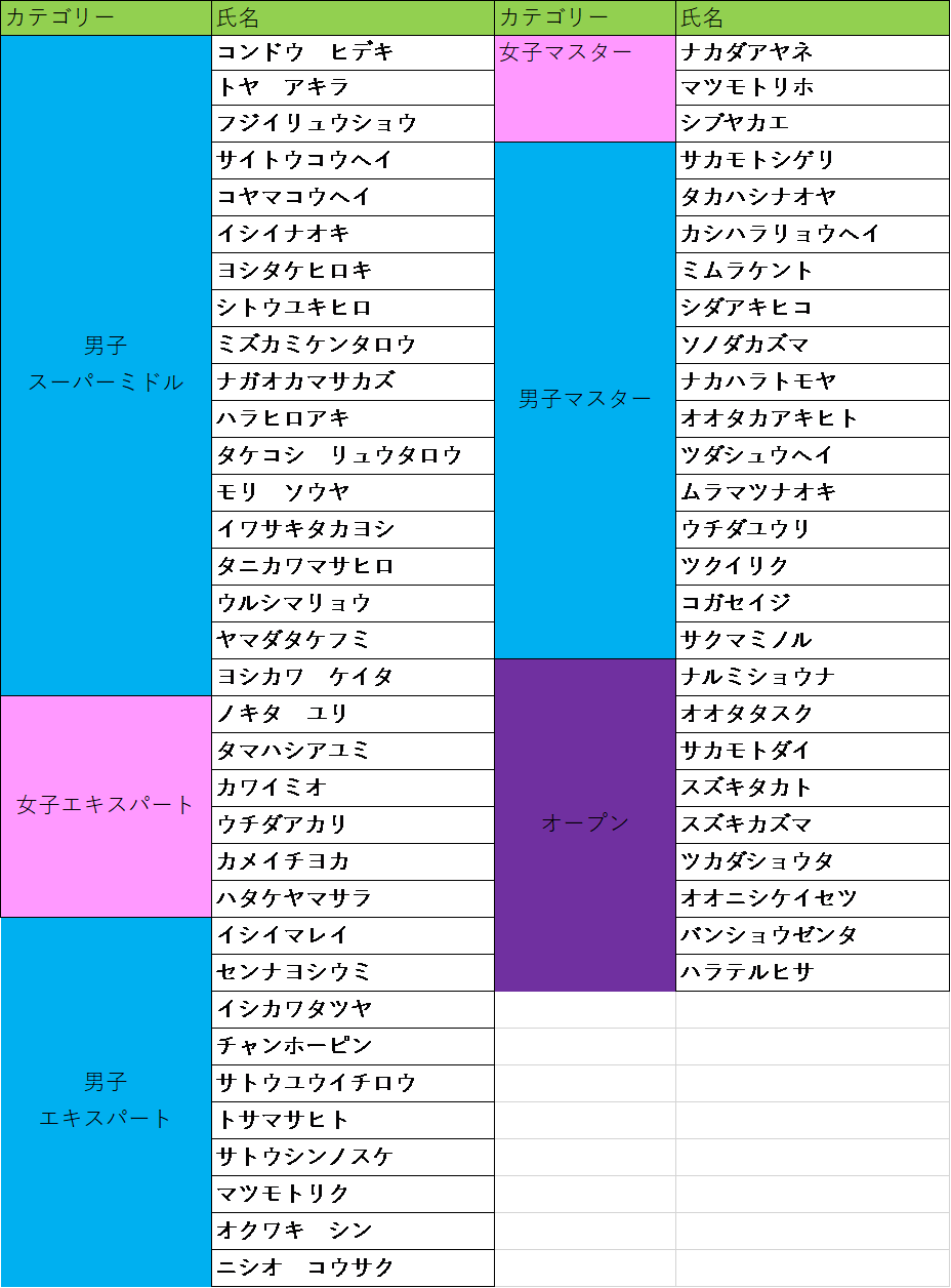 Monkey Cup エントリーリスト 確定版 カテゴリー統合にご協力いただきましてありがとうございます。 お名前/カテゴリーに誤りがないか最終チェックをお願いします! <当日のご案内> | ・コンペ費:当日、現金払いのみ ・アクセス:駐車場の利用を制限するので公共交通機関のご利用にご協力ください。 ・追加Tシャツ:ご注文分は1枚当たり+3000円(受付時に支払い) 次へ 前へ お知らせ一覧
